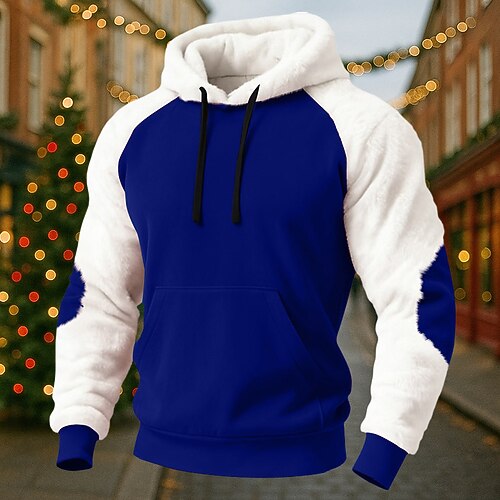 Per uomo Felpa con cappuccio Maglione Felpa con cappuccio in pile Felpa con cappuccio foderata in pile Nero Blu marino Grigio scuro Con Cappuccio Semplice Patchwork Blocco di colore Tasca a marsupio