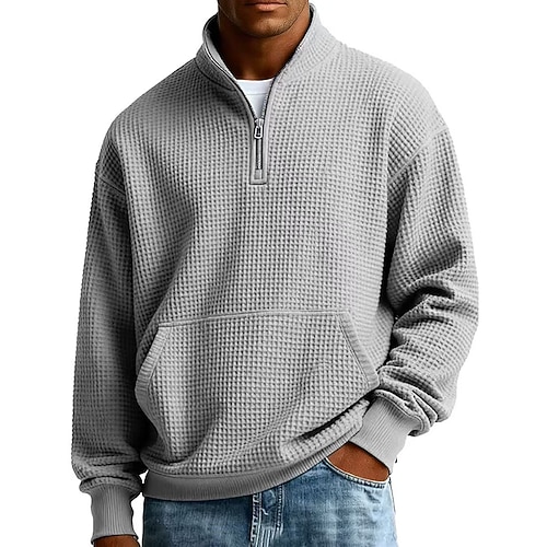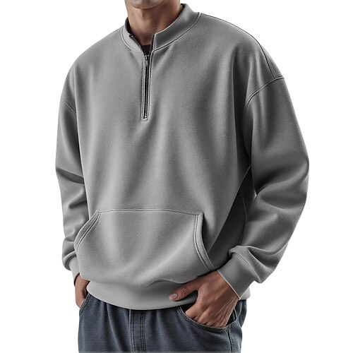 Per uomo Maglia Felpa in pile Maglione Felpa con zip corta Marrone Colletto Mao Semplice Zip a un quarto Tasca a marsupio Sport Outdoor Casuale Quotidiano Streetwear Cool Abbigliamento Sportivo