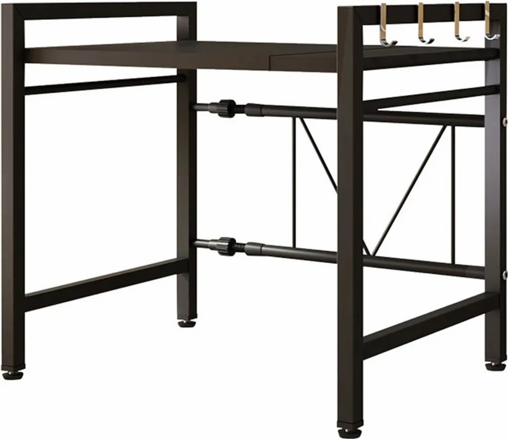 Mikrowellenständer – 2-stöckig, höhen- und längenverstellbar – platzsparend, stabil mit praktischem Stauraum in Schwarz L64xB36xH46cm /WB/