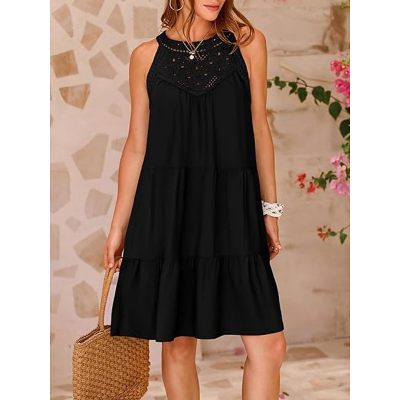 Women's Mini Dress White Dress Lace Dress Casual Dress Boho Dress Casual Daily Vacation Loose Fit Plain Sleeveless Halter Neck Black White Orange Green Summer Spring