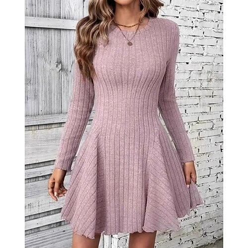 Per donna Mini Abito Vestito Casual Elegante Moda Moderno All'aperto Quotidiano Uscire Vestibilità regolare Semplice Manica Lunga Girocollo Nero Bianco Giallo Rosa Primavera Inverno Autunno