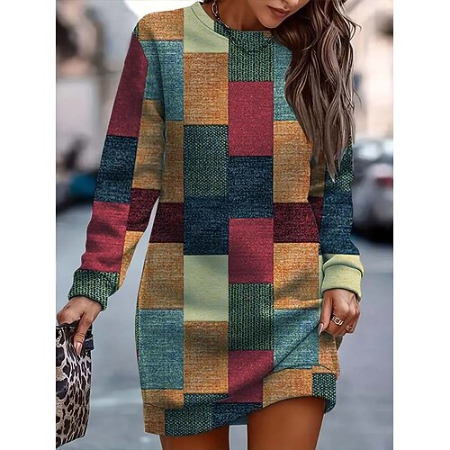 Per donna Mini Abito Abito in maglia Abito a Tubino Festa Casual Boho Scuola All'aperto Casa Vestibilità regolare Floreale Grafico Geometrico Manica Lunga Girocollo Viola Arancione Verde Primavera