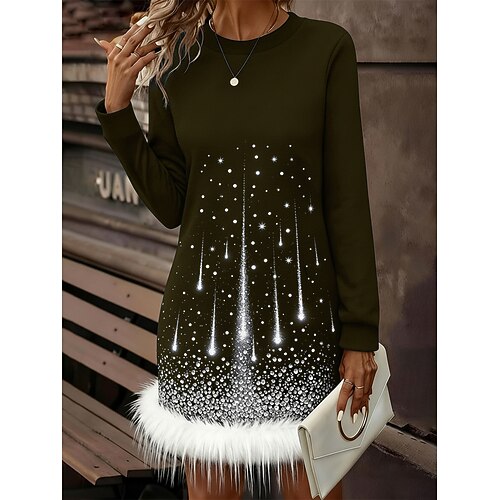 Per donna Mini Abito Vestito Casual Abito Invernale Tubino Elegante Moda Quotidiano All'aperto Vacanza Vestibilità regolare Grafico Galassia Manica Lunga Girocollo Nero Blu marino Verde Viola scuro