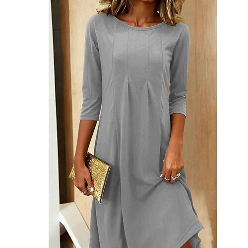 Per donna Abito Midi Abito a Tubino Casual Quotidiano Vestibilità regolare Semplice Manica 3/4 Girocollo Blu marino Arancione Marrone Verde Primavera Autunno Inverno