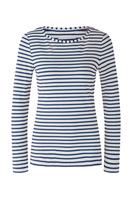 Oui SUMIKO Langarmshirt elastische Cotton-Modalmischung Gr. 38 in dk blue white | Obermaterial: 47% Baumwolle
