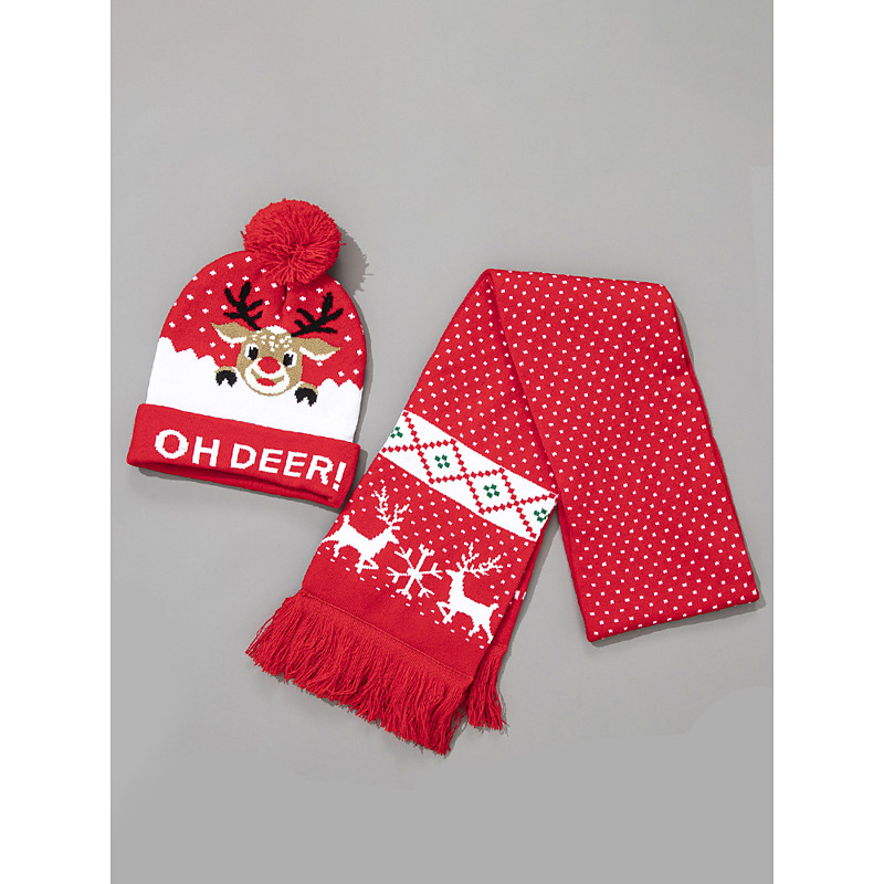 Women's Christmas Knit Hat and Scarf Set, Reindeer Design, Multiple Patterns, Cozy and Festive for Holiday Parties and Winter Wear