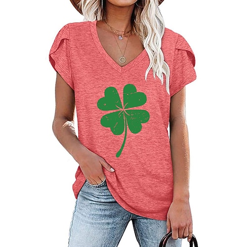 Giorno di San Patrizio Festa di San Patrizio Per donna Maglietta Foglia Giorno di San Patrizio Manica Lunga Scollo a V Top Regolari Ferie Weekend Stampato Nero Rosa Cachi Grigio