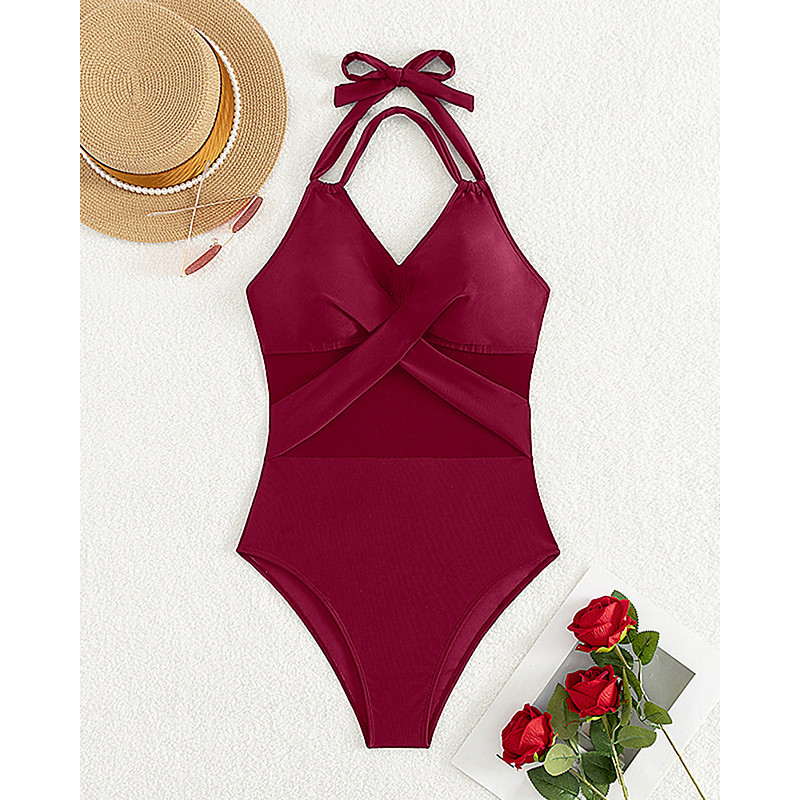 Women's One Piece Swimsuit Sexy Cutout Monokini Tummy Control High Waist Slim Backless Vacation Fashion Solid Color Halter Neck Sleeveless Bathing Suits