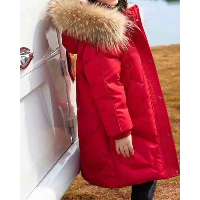 Kids Girls' Down Coat Solid Color Fashion Fur Trim Zipper Pocket School Coat Outerwear 4-12 Years Winter Black Pink Red
