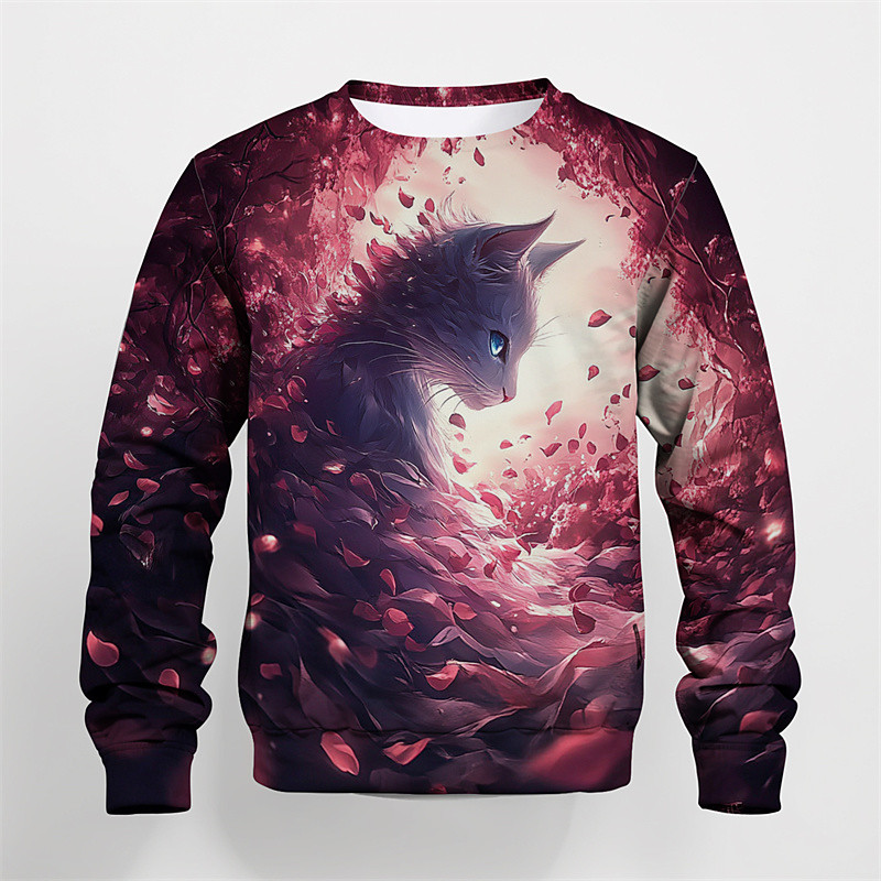 Boys 3D Graphic Cartoon Cat T shirt Tee Long Sleeve Spring Fall Fashion Basic Kids 4-12 Years Crew Neck Outdoor Casual Daily Regular Fit