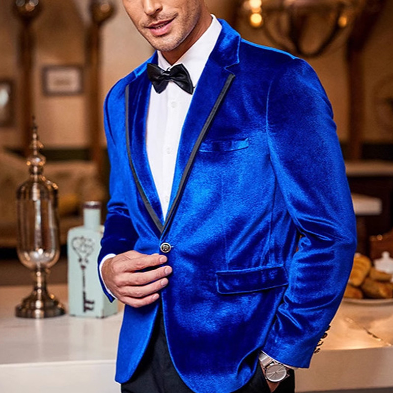 Men's Velvet Blazer Notch Collar Christmas Party Sparkle Solid Colored Velvet Blazer Blue Black Red Tailored Fit Single Breasted One-button