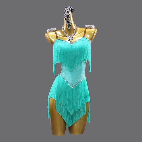 Lateinamerikanischer Tanz Kleid Kristall / Strass Quaste Spleißen Damen Leistung Party Ärmellos Spandex
