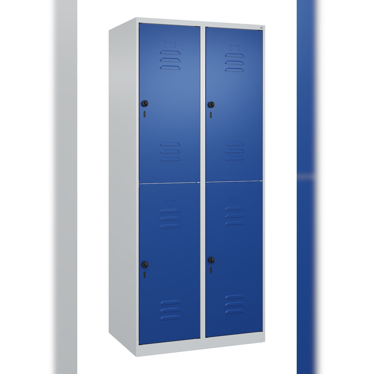 C+P Spind Classic PLUS, 4 Abteile, HxBxT 185x80x50cm, Sicherheitsdrehriegel, Hellgrau/Enzianblau von PROREGAL