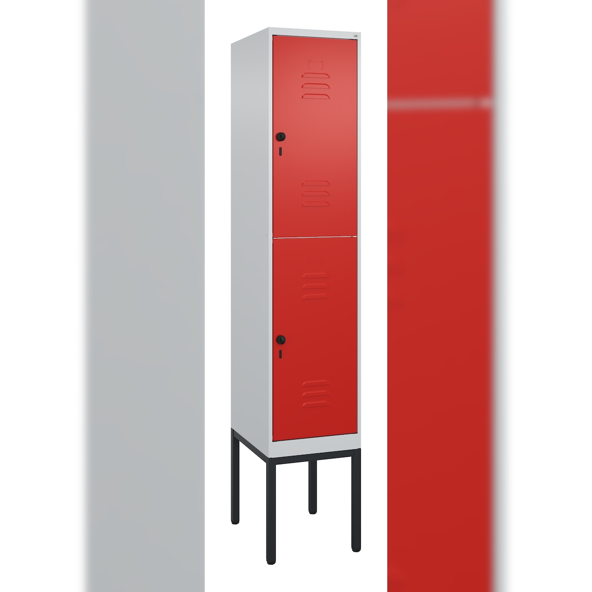 C+P Spind Classic PLUS, Gestell, 2 Abteile, HxBxT 212x40x50cm, Sicherheitsdrehriegel, Hellgrau/Rot von PROREGAL