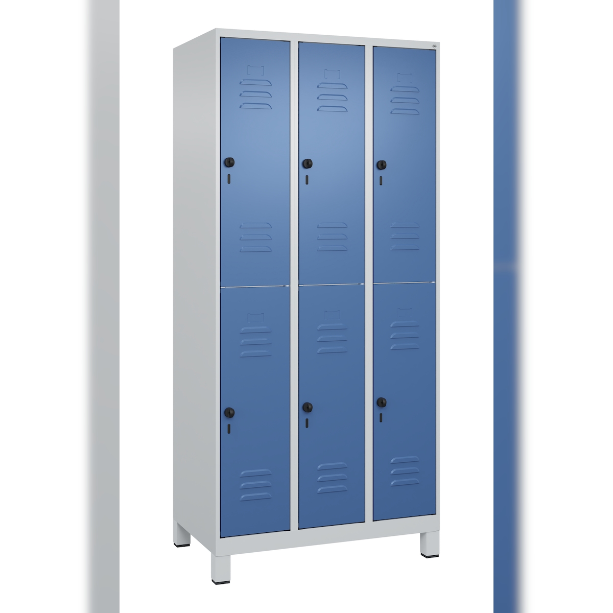 C+P Spind Classic PLUS, Füßen, 6 Abteile, HxBxT 195x90x50cm, Sicherheitsdrehriegel, Hellgrau/Enzianblau von PROREGAL
