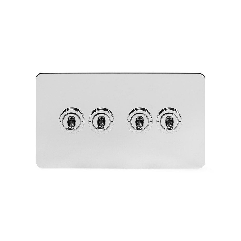 Soho Lighting Polished Chrome Flat Plate 20A 4 Gang 2 Way Toggle Switch Screwless