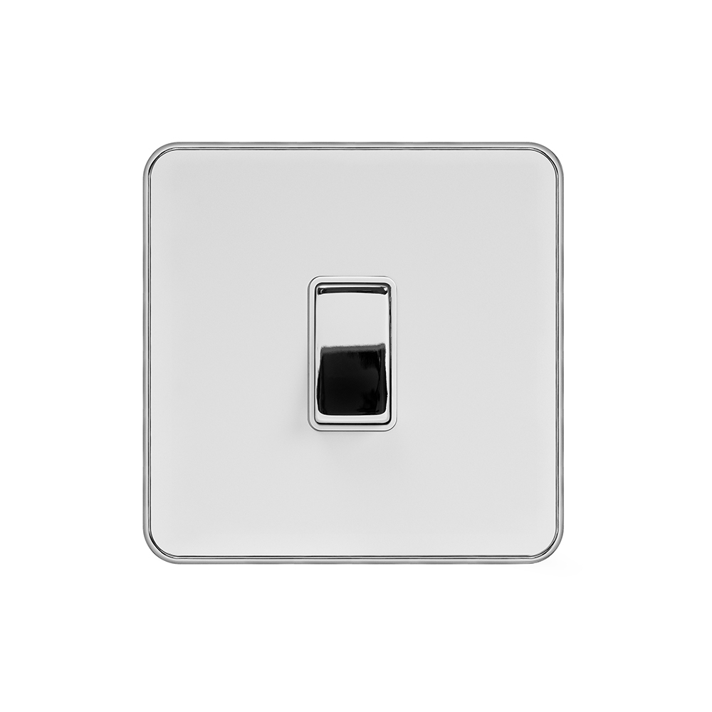 Soho Lighting White & Polished Chrome With Chrome Edge 10A 1 Gang 2 Way Switch White Inserts Screwless - Size: 90mm x 90mm