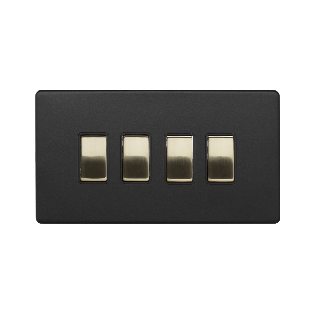 Soho Lighting Matt Black & Brushed Brass 4 Gang Switch With 1 Intermediate (3 x 2 Way Switch with 1 Intermediate) Blk Ins Screwless