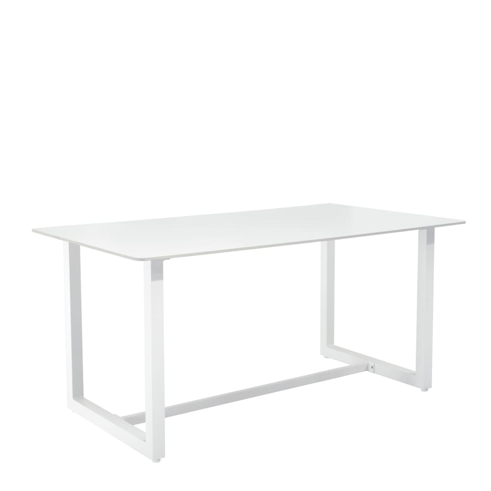 Tavolo da esterno con piano in porcellana bianca e gambe bianche