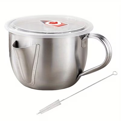 pentola separatrice per zuppa in acciaio inox con grande capacità, coperchio, colino e filtro per olio e grassi per cucinare in cucina, filtro versatile per carne e olio, utensile da cucina, design
