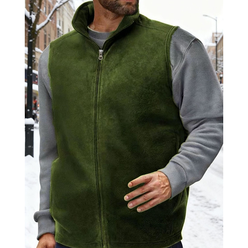 Men's Outdoor Vest Vest Gilet Casual Outdoor Vacation Fashion Streetwear Winter Autumn Full Zip Fleece Polyester Thermal Warm Plain Zipper Stand Collar Regular Fit Black Brown Army Green Gray Vest