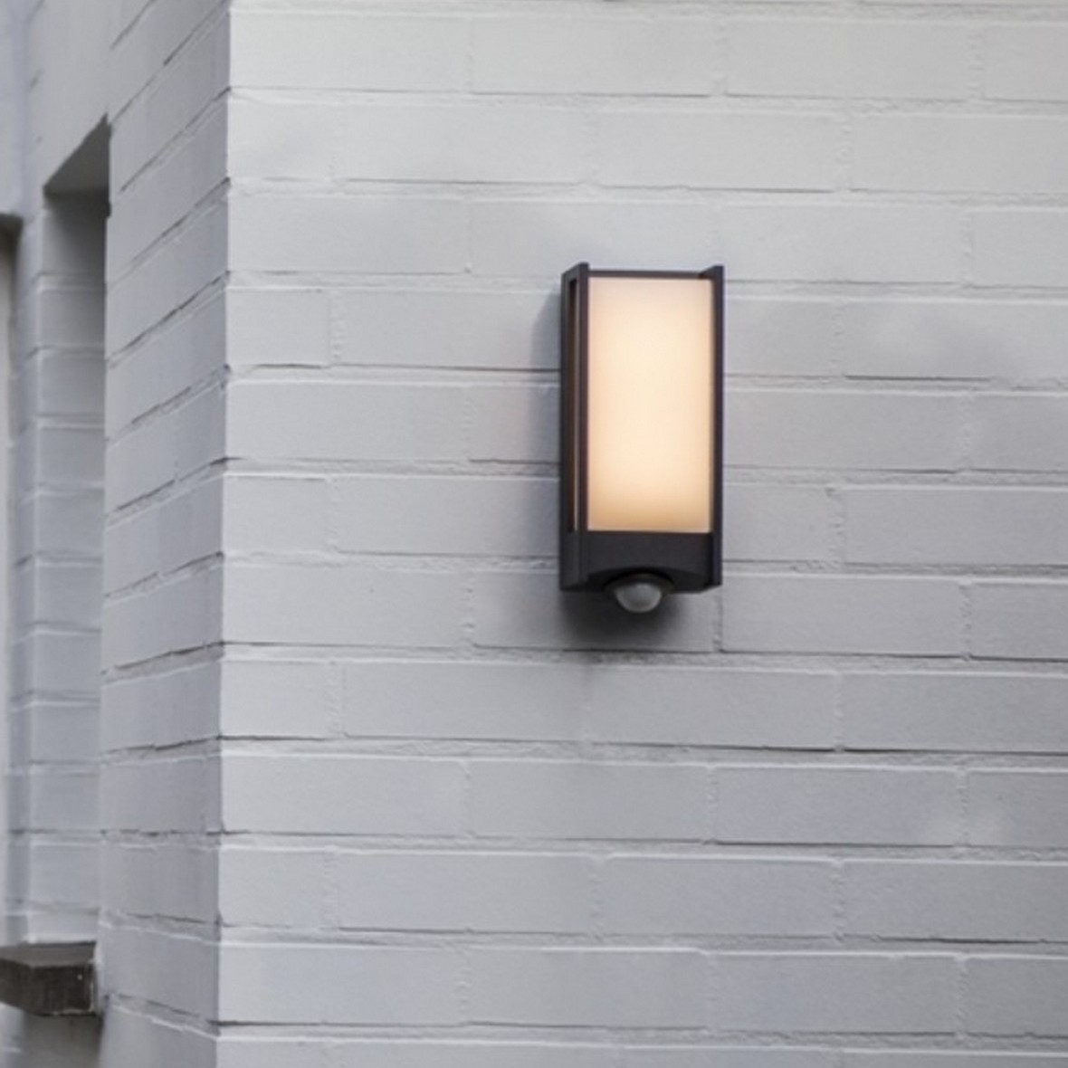 Lutec Qubo - Applique d'extérieur avec détecteur - 11 x 10 x 27 cm - 14W LED inclus - IP54 - gris anthracite
