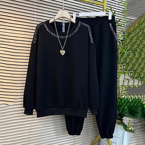 Per donna Tute in pile Felpa pullover Abiti da salotto con tasca Tinta unita Completo Abbigliamento Autunno Inverno Nero Rosso Palestra All'aperto Corsa Caldo Manica Lunga Sport Abbigliamento