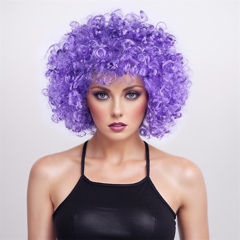 Carnival Wig Black Blue Brown Curly Afro Short Synthetic Festival Wig Mardi Gras Parade Cosplay Costume Hair for Women