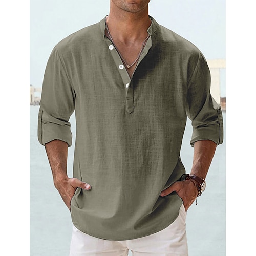 Per uomo Camicia Camicia di lino Camicia Estiva Camicia da Spiaggia Semplice Vacanza Camicia hawaiana Blu Nero Bianco Rosa Manica Lunga Collo alla coreana Primavera Estate Abbigliamento Base