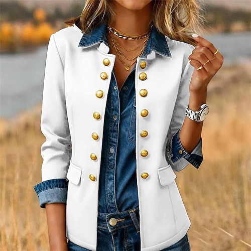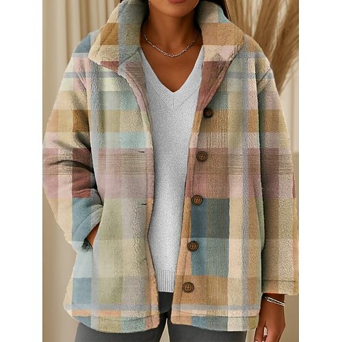Per donna Cappotto Invernale Giacca Camicia Giacca Casual Antivento Caldo Patchwork Tasca Bottoni Elegante Attivo Moda Quotidiano Tinta unica All'aperto Vacanza Casa Lavoro Regolare Collo alla coreana
