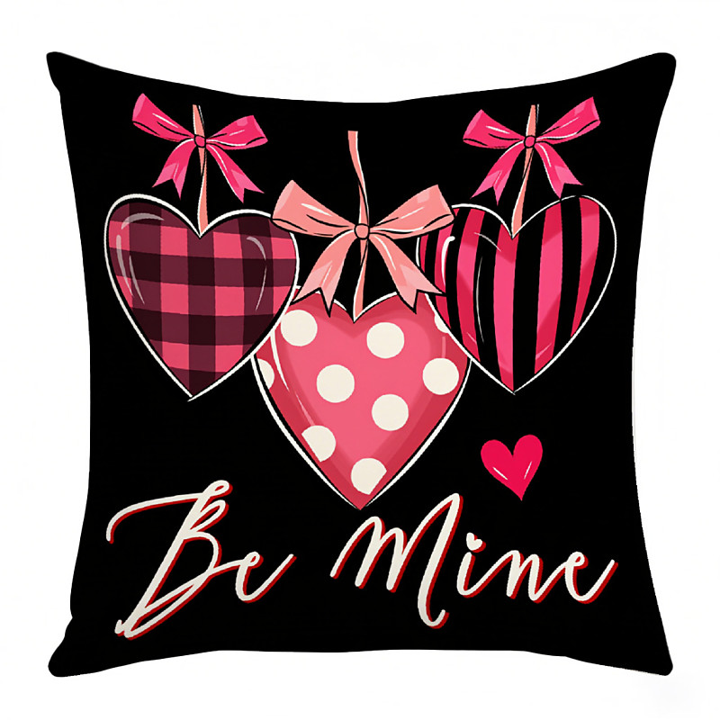 Valentine's Day Pink and Black Series Double-Sided Letter Print Pillow Case, Festive Holiday Atmosphere, Decorative Cushion for Living Room, Sofa, Valentine's Day Decor