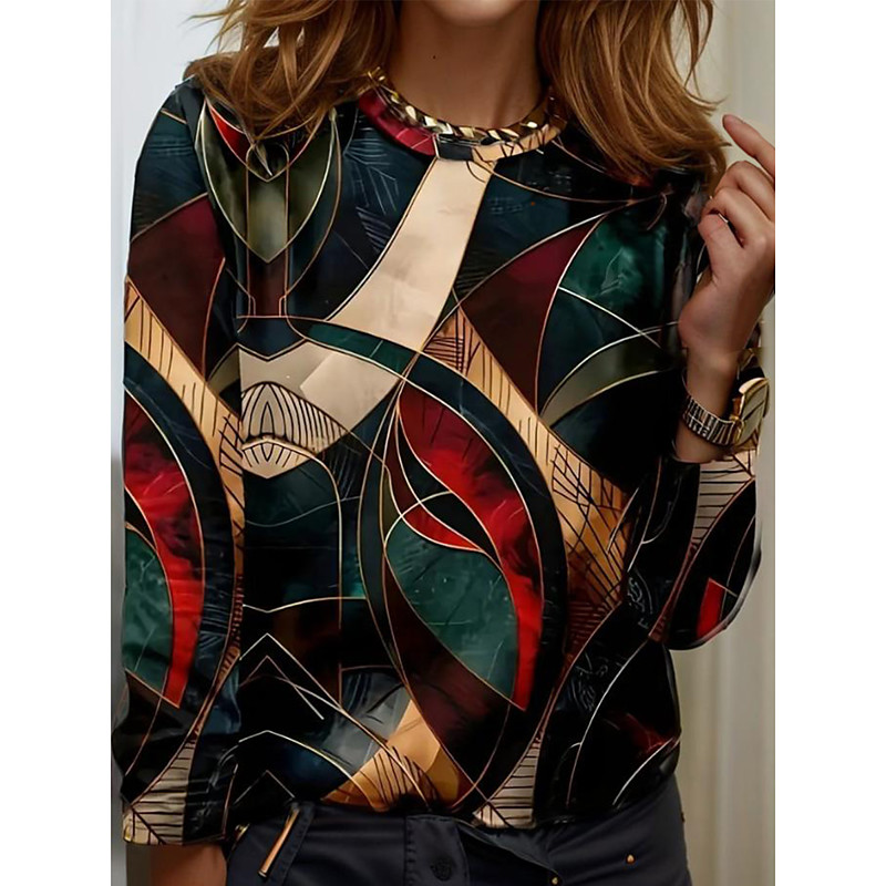 Women's T Shirt Graphic Geometric Vintage Stylish Classic Long Sleeve Crew Neck Regular Tops Daily Print Blue Purple Brown Spring Fall Winter