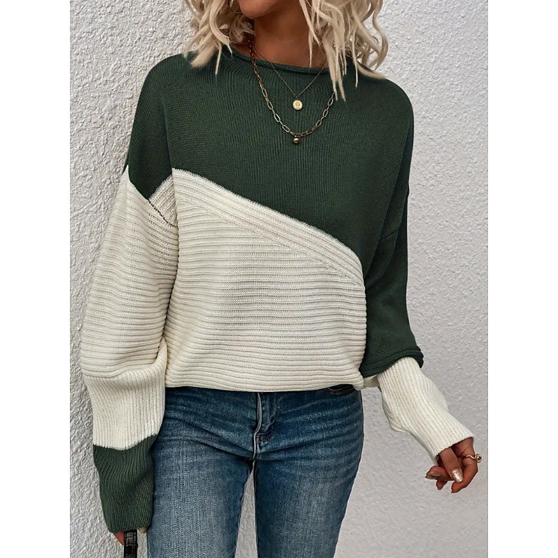 Women's Sweater Casual Soft Color Block Ribbed Crew Neck Knitted Long Sleeve Regular Tops Knit Outdoor Daily Weekend Blue Black Fall Winter
