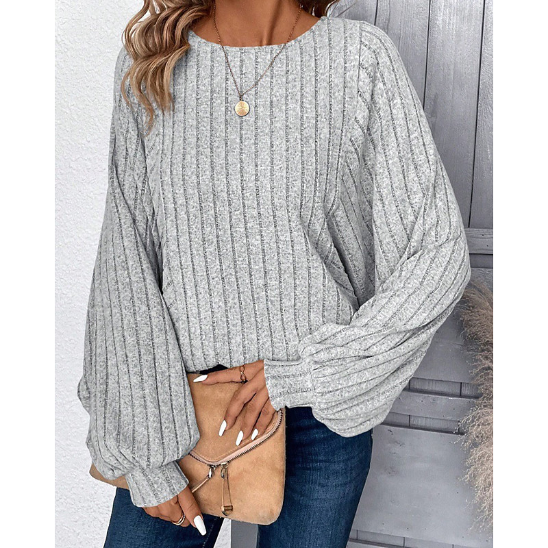 Women's Sweater Pullover Fashion Striped Ribbed Crew Neck Knitted Long Sleeve Regular Tops Knit Outdoor Going out Weekend Black White Fall