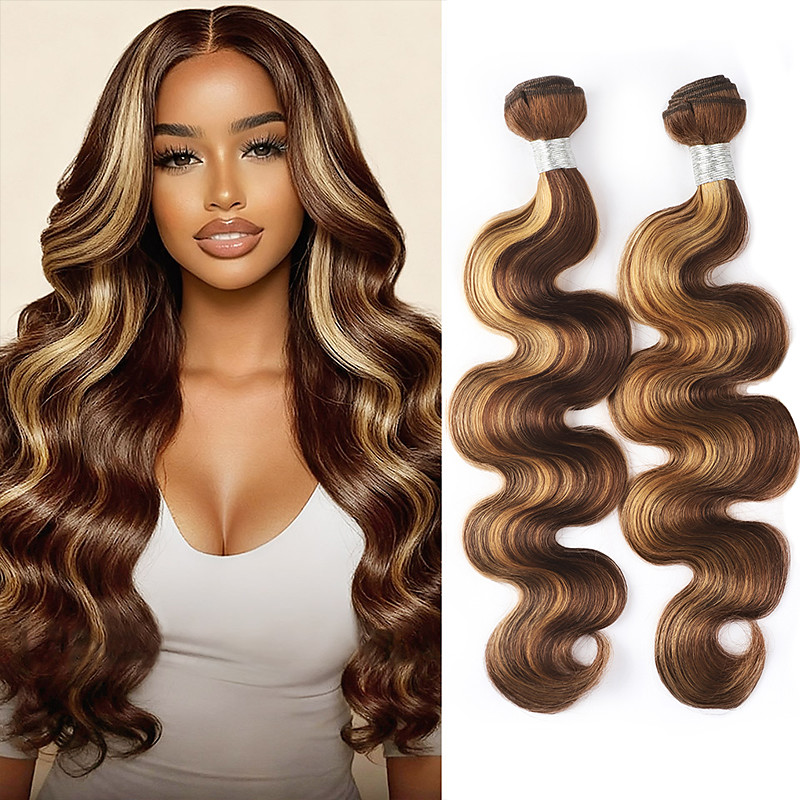 2 Bundle Hair Weaves Highlight P4/27 Human Hair Bundle Body Wave Bundles 12-28 Inch
