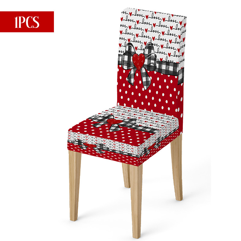 Valentine's Day Stretch Dining Chair Cover Black White Buffalo Check Heart Bow Car Back Slipcover Washable Winter Home Restaurant Kitchen Living Room Decor 1/4/6 Pcs