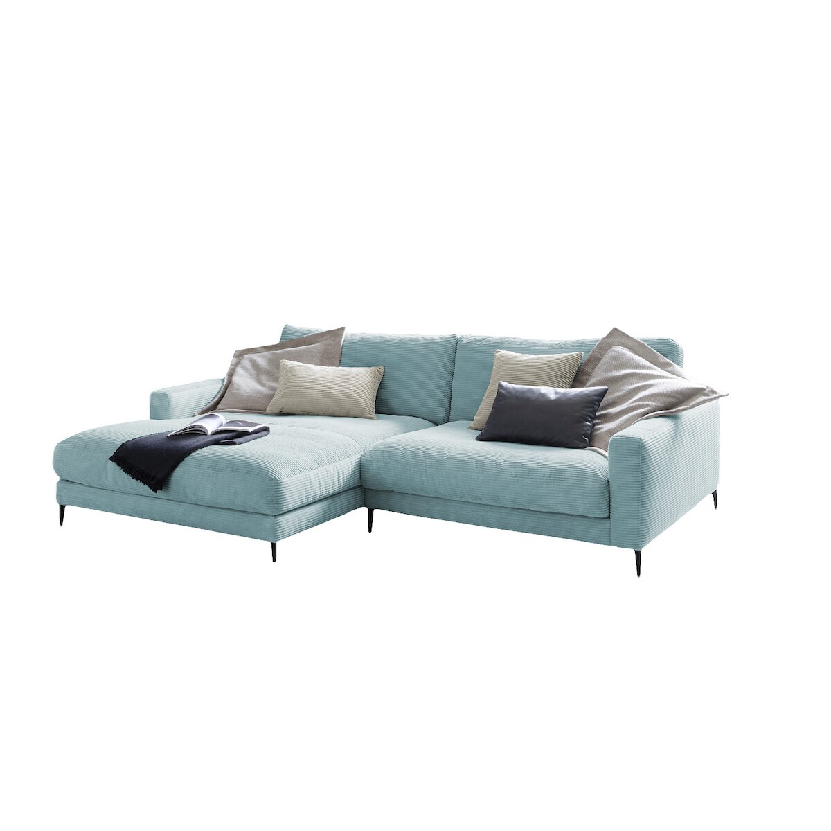 KAWOLA Ecksofa CARA Sofa Recamiere links Cord hellblau