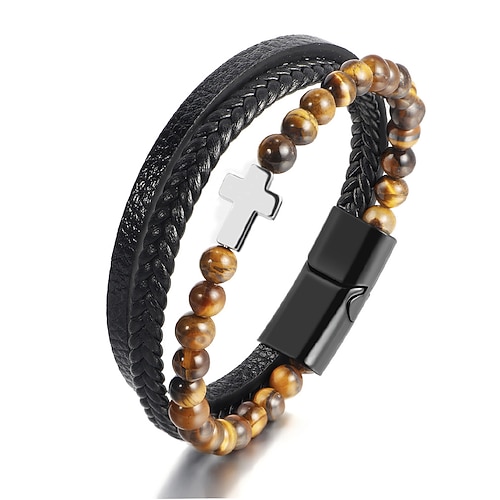 Bracciale da uomo con chiusura magnetica: design in pietra naturale e similpelle, elegante e resistente, perfetto per l'uso casual e quotidiano.