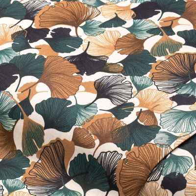 Tissu coton "feuilles ginkgo", blanc/coloré, série "Sina"