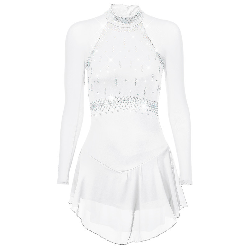 Figure Skating Dress Women's Girls' Ice Skating Dress Sky Blue White Patchwork Open Back Mesh High Elasticity Training Competition Skating Wear Classic Crystal / Rhinestone Long Sleeve Ice Skating