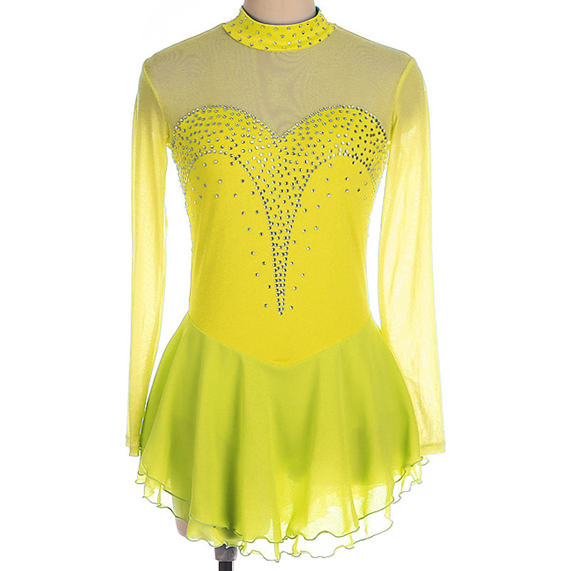 Figure Skating Dress Women's Girls' Ice Skating Dress Yellow Patchwork Open Back Mesh Spandex Stretchy Training Practice Professional Skating Wear Thermal Warm Crystal / Rhinestone Sleeveless Ice