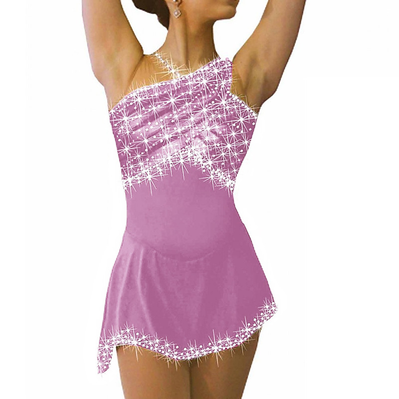 Figure Skating Dress Women's Girls' Ice Skating Dress Yan pink Dark Purple Light Purple Open Back Mesh Spandex High Elasticity Competition Skating Wear Handmade Crystal / Rhinestone Sleeveless Figure