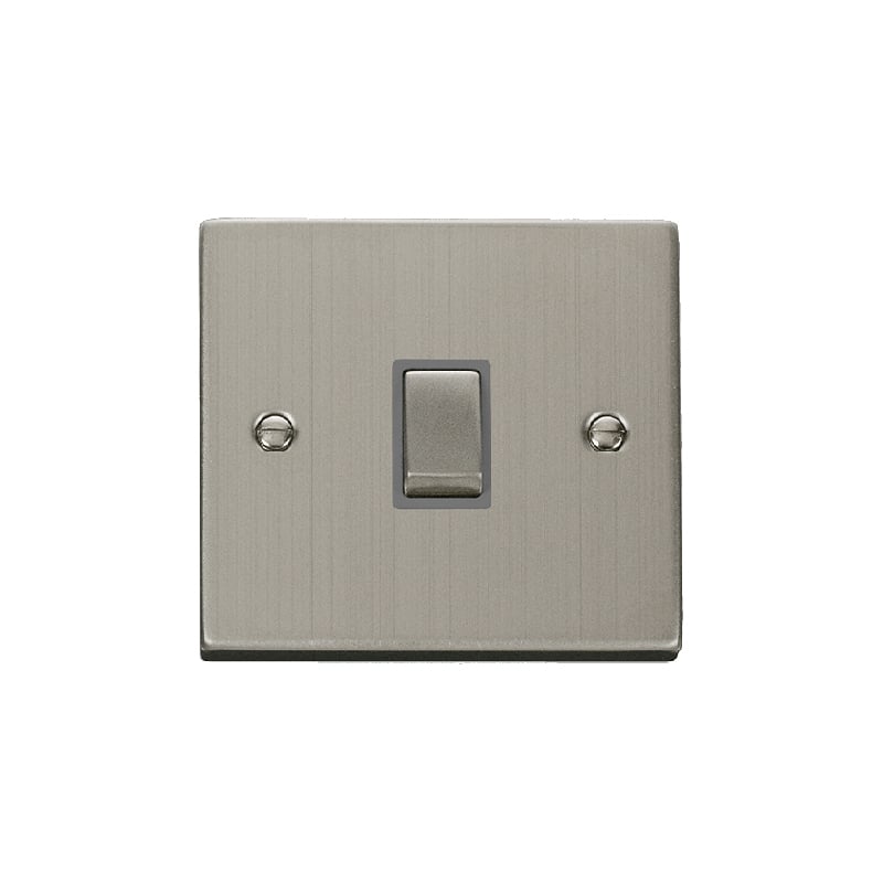 Click Deco 20A 1 Gang Double Pole 'Ingot' Switch Stainless Steel Insert Grey