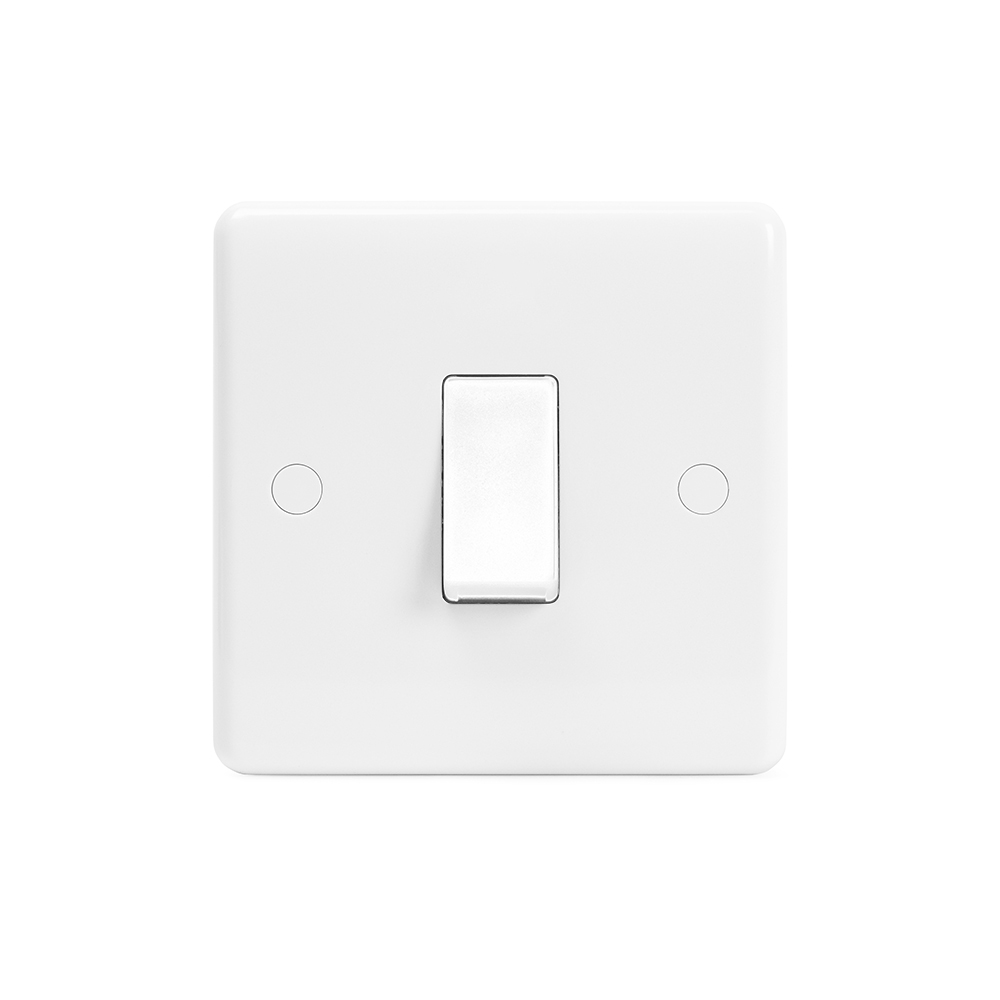 Lieber Silk White 45A 1 Gang Double Pole Switch Single Plate - Curved Edge