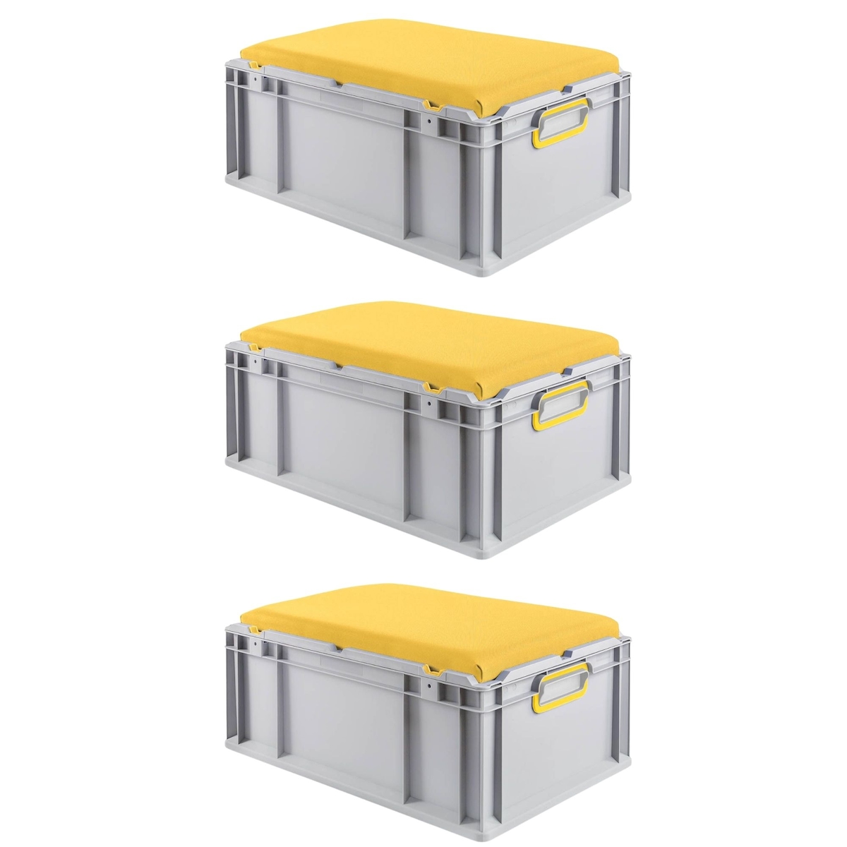 PROREGAL 3x Eurobox NextGen Seat Box Gelb | HxBxT 26,5x40x60cm | 44 Liter | Griffe geschlossen | Eurobehälter, Sitzbox