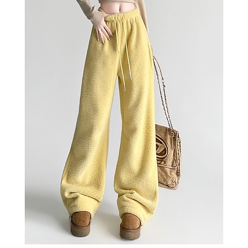 Per donna Culotte Gamba Larga Pantaloni in Pile Streetwear Casual Lunghezza intera Vita media Semplice Tasca Elastico in vita Coulisse alla gamba Confortevole Micro-elastico Vacanza Streetwear