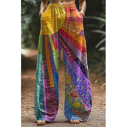 Per donna Culotte Gamba Larga Gamba larga Chinos Vacanza Vintage Stile Etnico Lunghezza intera Vita Alta Floreale Grafico Astratto Asciugatura Rapida Traspirabilità Morbido Inelastico Formale