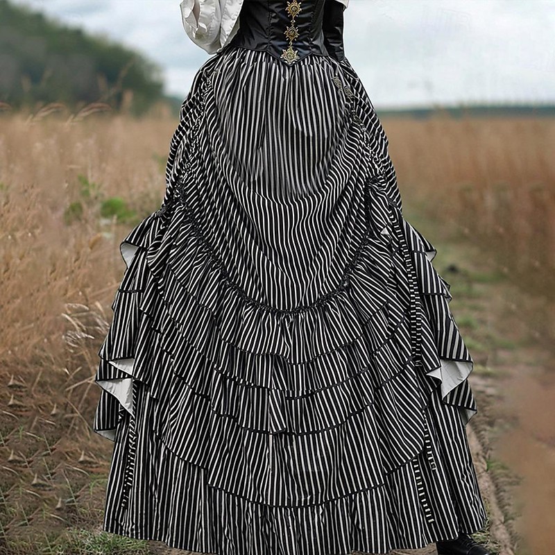 Retro Vintage Punk Gothic Medieval Skirt Goth Girl Flounced Stripes Fancy Dress Women's Fantasy Steampunk Masquerade Casual Daily Adults' Skirt
