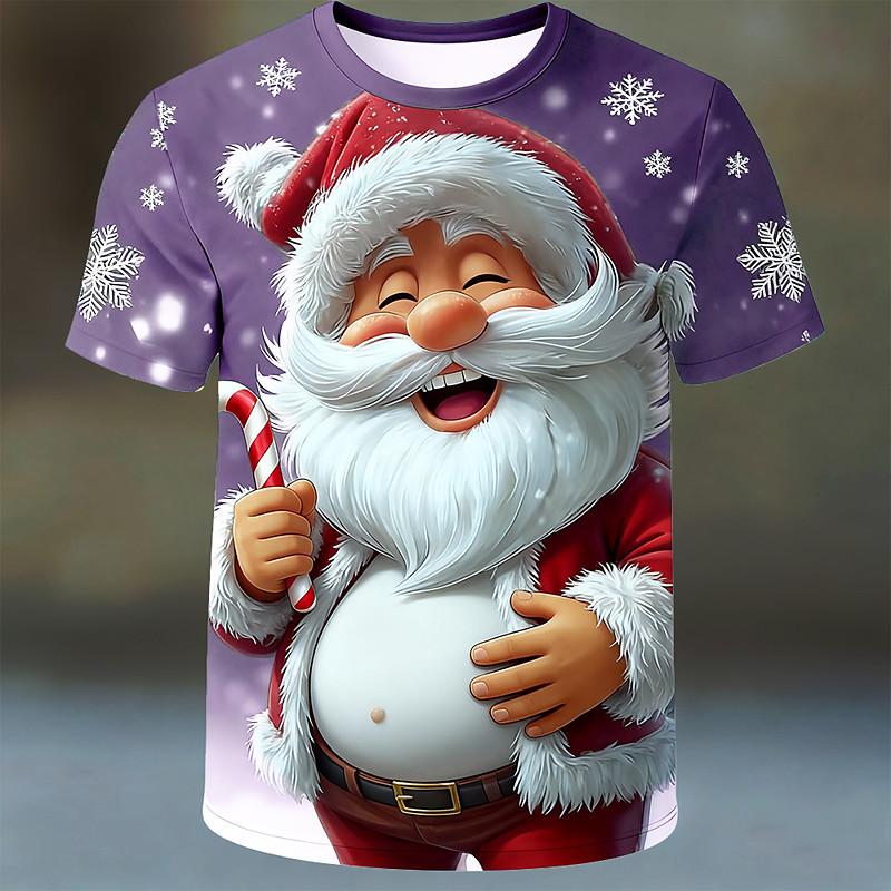 Christmas Men's Santa Claus T Shirt Short Sleeve T shirt 3D Print Crew Neck Shirt Daily Designer Artistic Vacation Party Street Blue Red Purple All Seasons Clothing Apparel S M L XL XXL XXXL