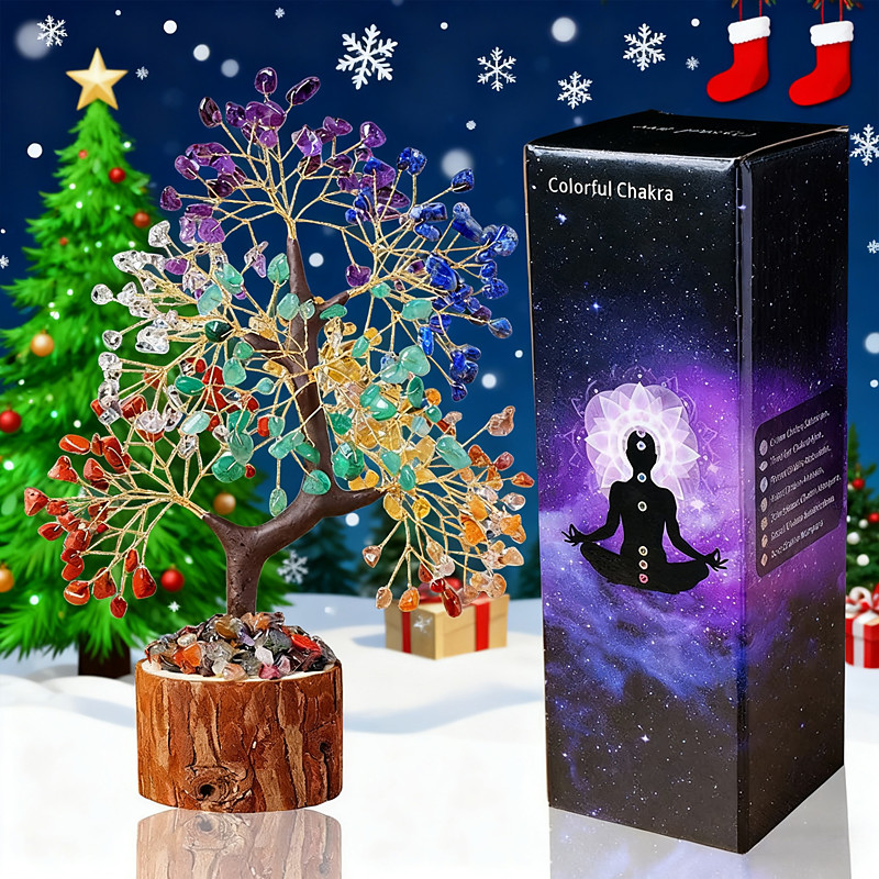 Christmas Gifts for Women Mom Her, Crystal Tree of Life 7 Chakra Healing Crystal Trees for Home Decor Office Desk Decor Living Room Decor Handmade Bonsai Trees for Positive Energy Money Good Luck